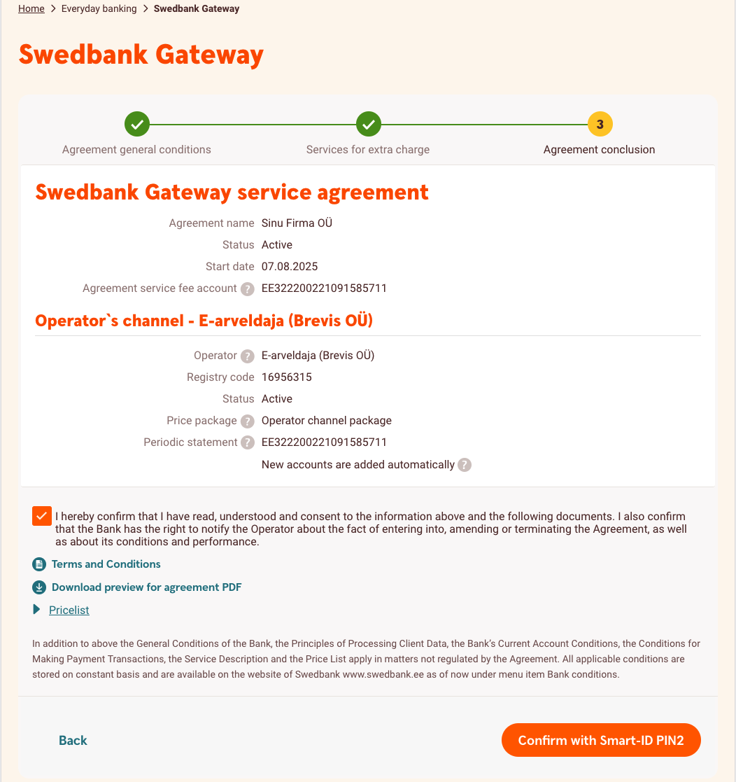 After signing the Swedbank Gateway agreement, the integration will be activated automatically by the next day at the latest.